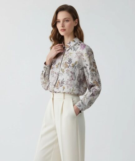 The Mixed-Blue Silk Shirt with Elastic Detailing