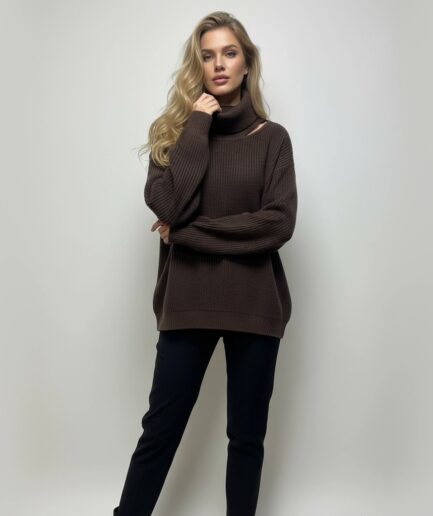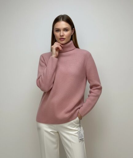 This turtleneck sweater is crafted from a luxurious silk and cashmere-blend fabric. Designed for easy slip-on wear, it features side slits and a lightweight knit construction for comfortable, effortless style.