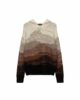 Embrace the spirit of the great outdoors with this artistically crafted hooded pullover, where rugged beauty meets cozy comfort. Knitted in a substantial, textural gauge from a luxurious blend of wool, mohair, and other fibers, this piece offers exceptional warmth and a captivatingly soft, haloed effect. Its defining feature is a breathtaking, all-over pattern of interlocking peaks and valleys, woven in a harmonious gradient of colors that mimics the serene and majestic beauty of a mountain range at dawn or dusk. The practical hood and relaxed, oversized fit make it the ultimate statement piece for those who find inspiration in nature and value artisanal design in their wardrobe.