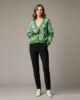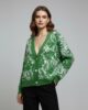Embrace cozy elegance with this mid-weight merino wool cardigan, featuring an all-over green leaf pattern that brings a touch of nature’s serenity to your wardrobe. Crafted from soft and resilient wool, this piece offers substantial warmth and comfort for cooler days. The classic V-neckline flatters the frame and allows for versatile layering over your favorite tops, while the long sleeves and rib-knit cuffs and hem provide a snug, structured fit that helps retain the cardigan’s shape. Perfect for adding a sophisticated, artistic flair to both casual and refined outfits.